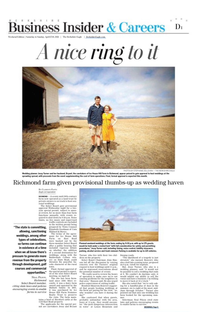 In 2001 Ice House Hill Farm Nominee Land Trust purchased the farm to preserve the stunning vista. The iconic Ice House is used in modern times as a tool shed and is the star feature of one of the most beloved landscapes in the region. Today the farm houses a happy herd of Hereford cattle and is kept in pristine condition through the efforts of the land trust.